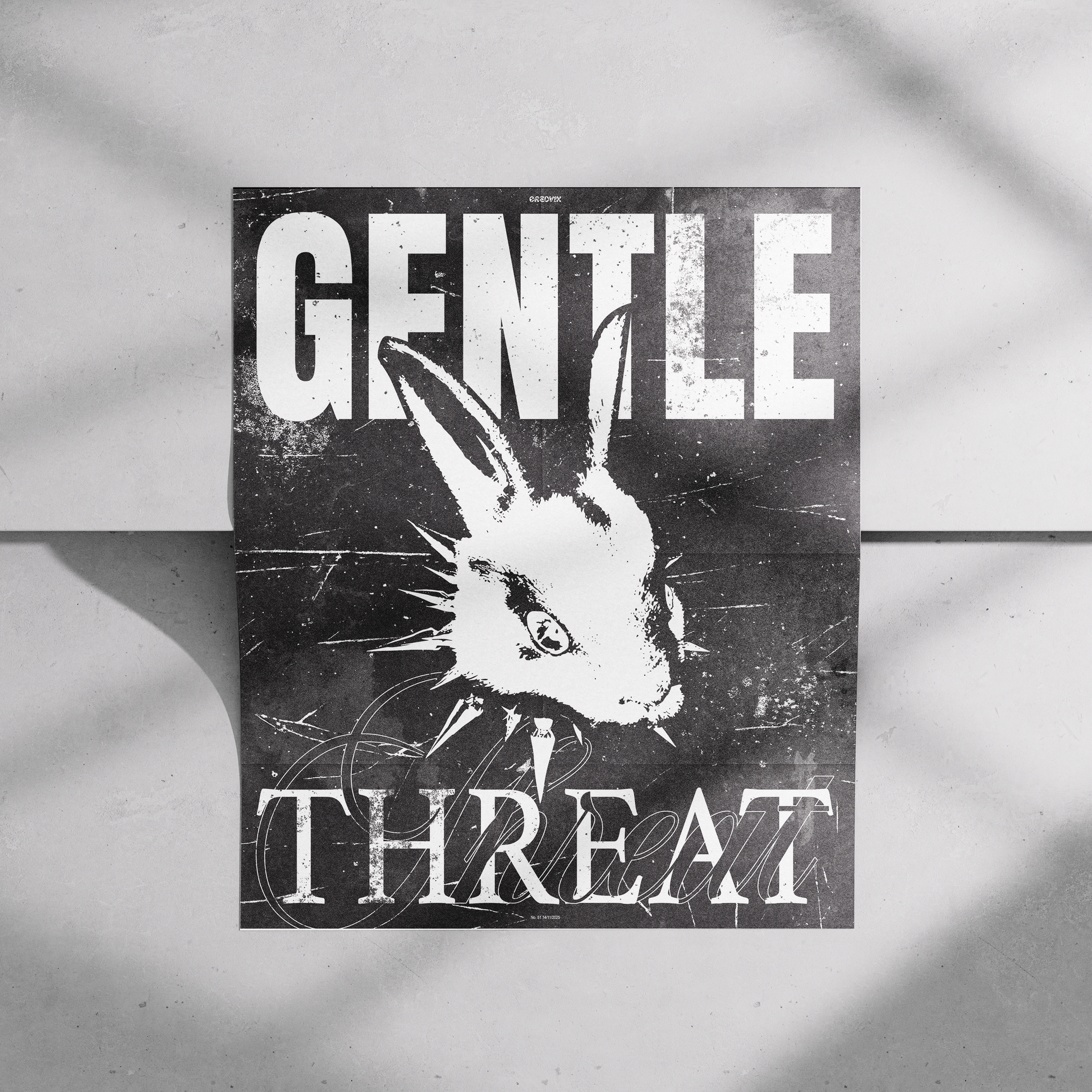 This poster channels a dark, punk-inspired energy with bold, high-contrast artwork. A distressed black-and-white rabbit graphic and oversized type read as both playful and edgy — a piece that turns a blank wall into a statement. Hang it in a studio, den, or music room to add attitude without overpowering the space. The satin option gives the image a slight sheen that makes ink tones pop, while the archival matte keeps the look muted and gallery-ready. Choose the size and orientation that fits your wall and let the piece sit beside plants, records, or vintage finds to complete a lived-in, rebellious vibe.